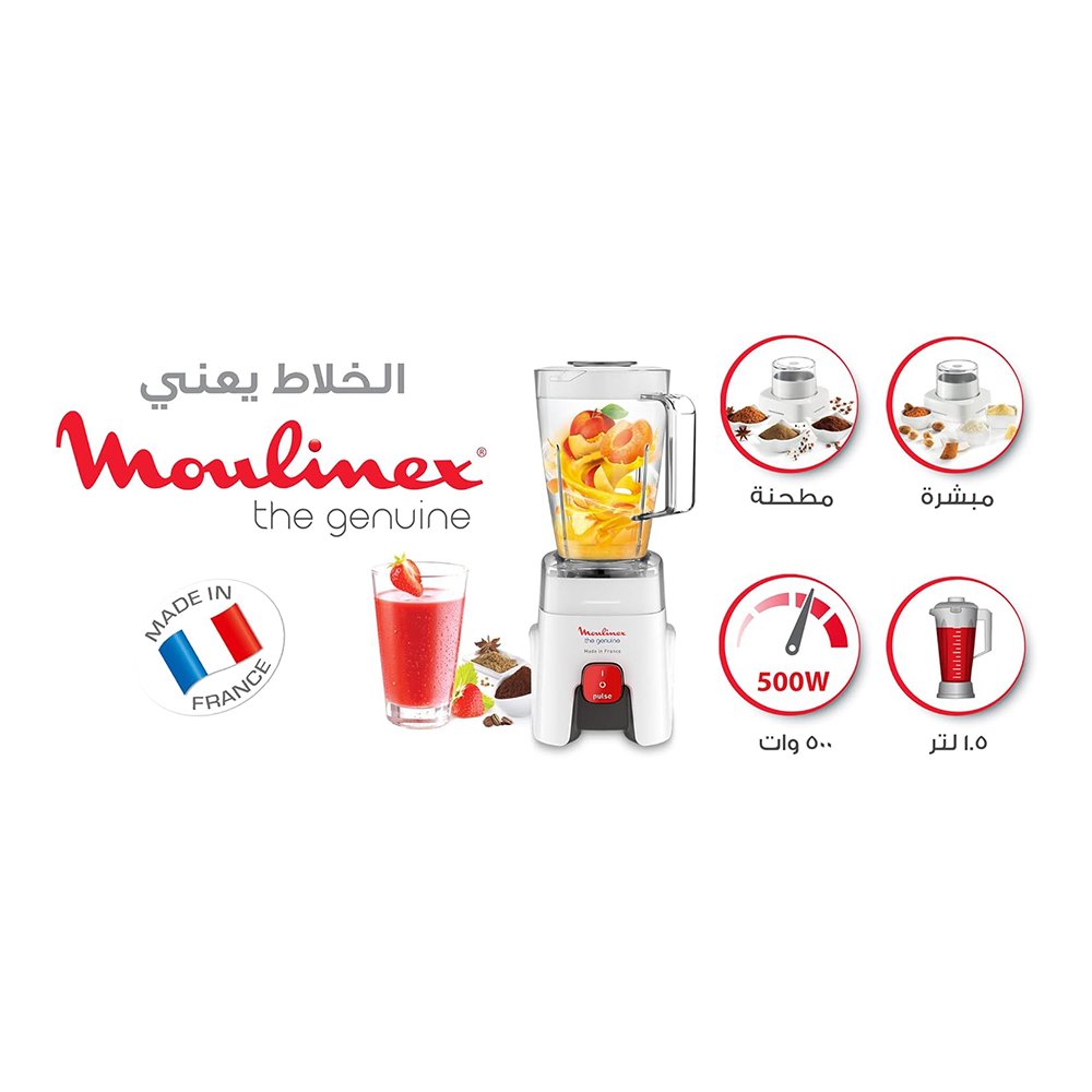 خلاط مولنيكس فرنساوي 500 وات - سعة 1.75 لتر - 2 مطحنة - LM242B25 غير متوفر حالياً