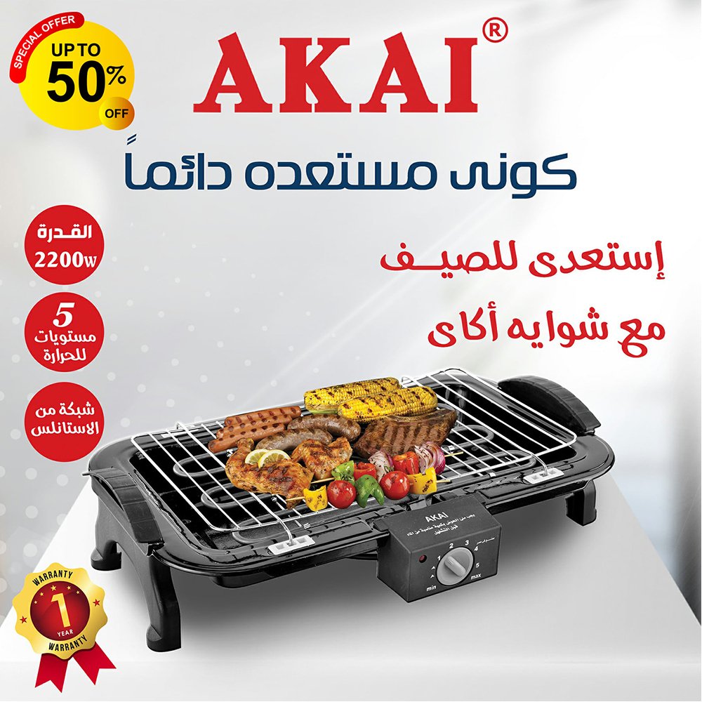 شواية كهربائية اكاي 2200 وات - أسود - AK 101 متوفر