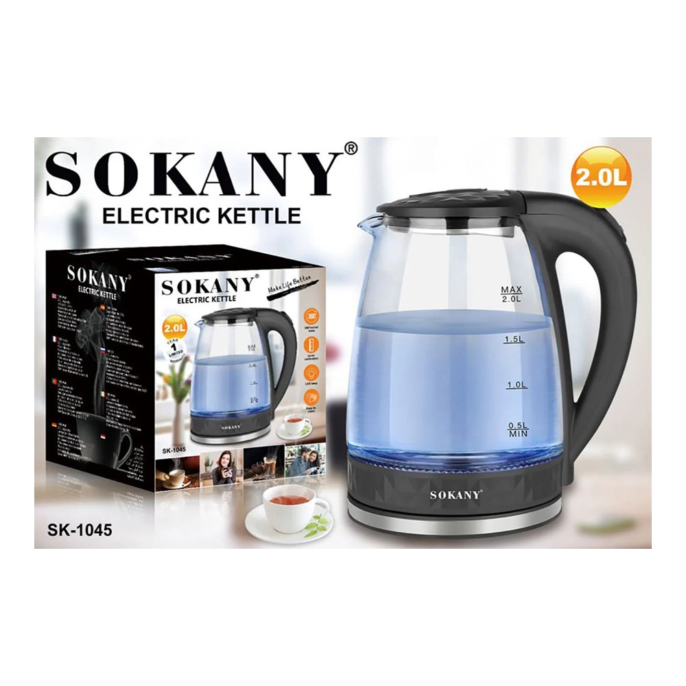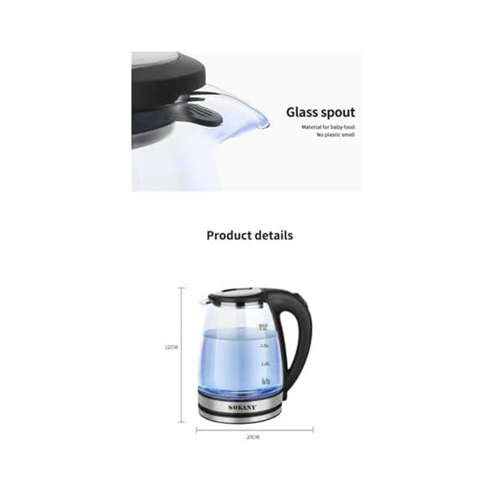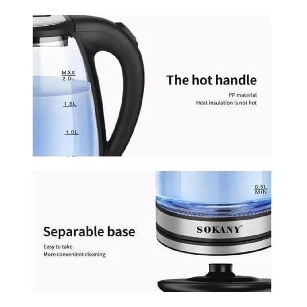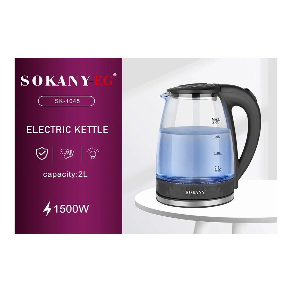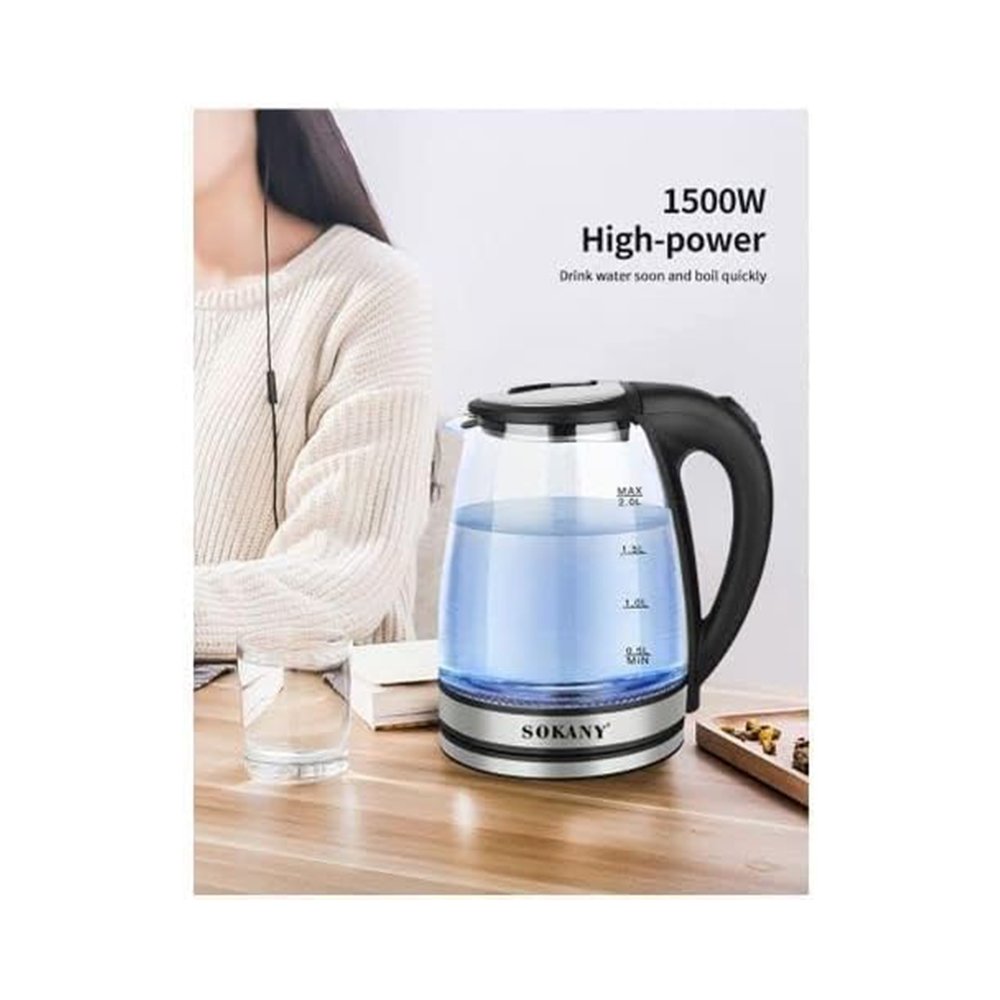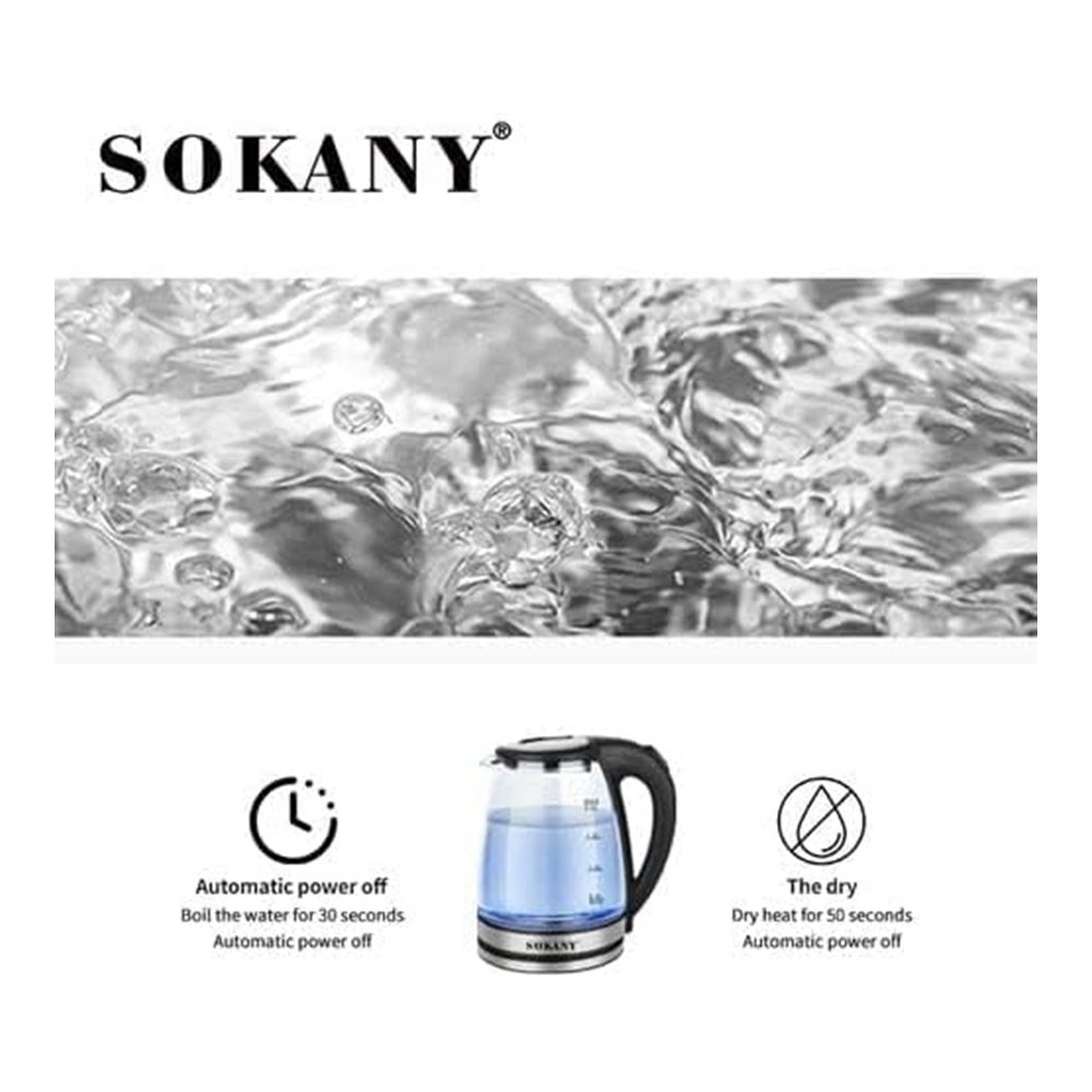 غلاية كهربائية سوكاني 2 لتر - كاتيل زجاج - بإطار ليد ازرق مضئ - SK-1045 غير متوفر حالياً