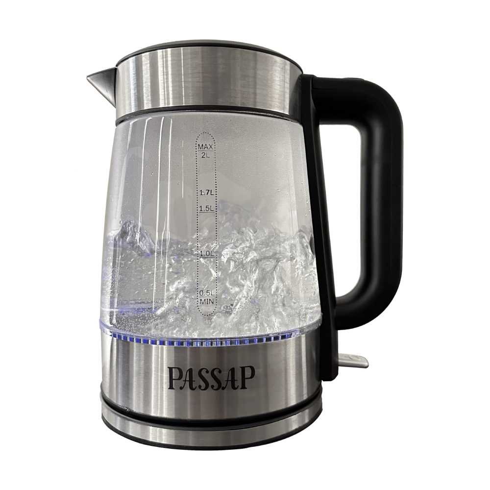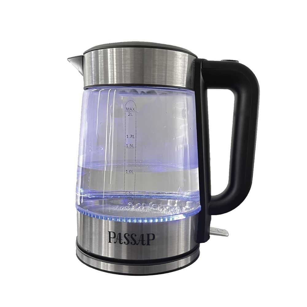 غلاية كهربائية باساب 2 لتر - زجاج - بإطار ليد ازرق مضئ - PK-200 غير متوفر حالياً